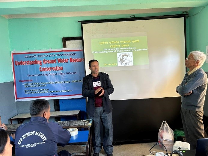 Soil and Water Conservation Society, Nepal conducts the school conservation education programme regularly aiming to promote soil and water conservation knowledge and skill among the school students. As per the plan of the society for 2079/80, school programme is conducted at the New Horizon Academy located at the Machhegaun, Chandragiri Municipality ward 9, Kathmandu on Tuesday 12 Poush 2079 (27 December 2022).